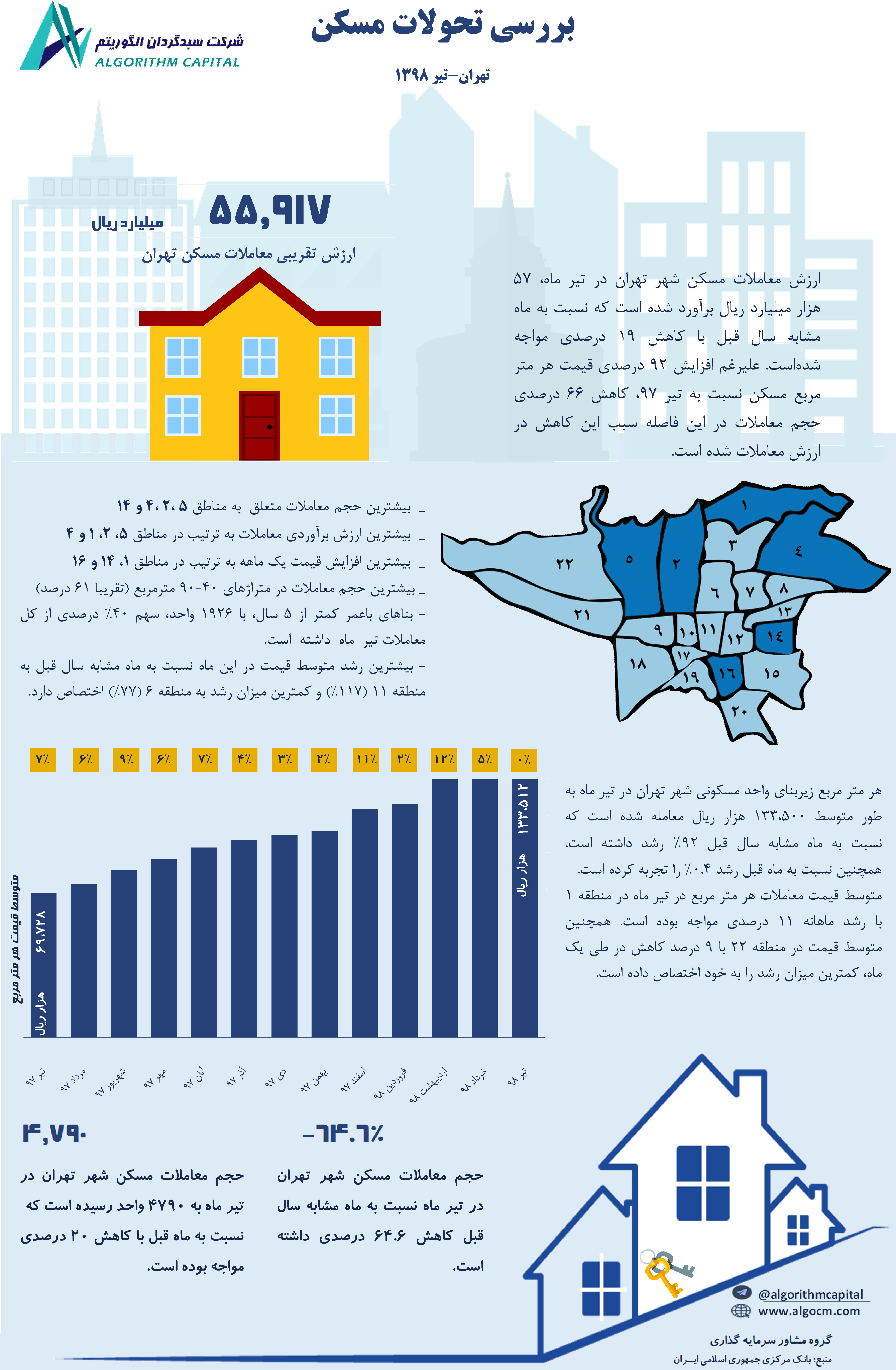 تحولات مسکن شهر تهران ،توقف رشد قیمت مسکن در کنار افت شدید حجم معاملات ماهانه در شهر تهران