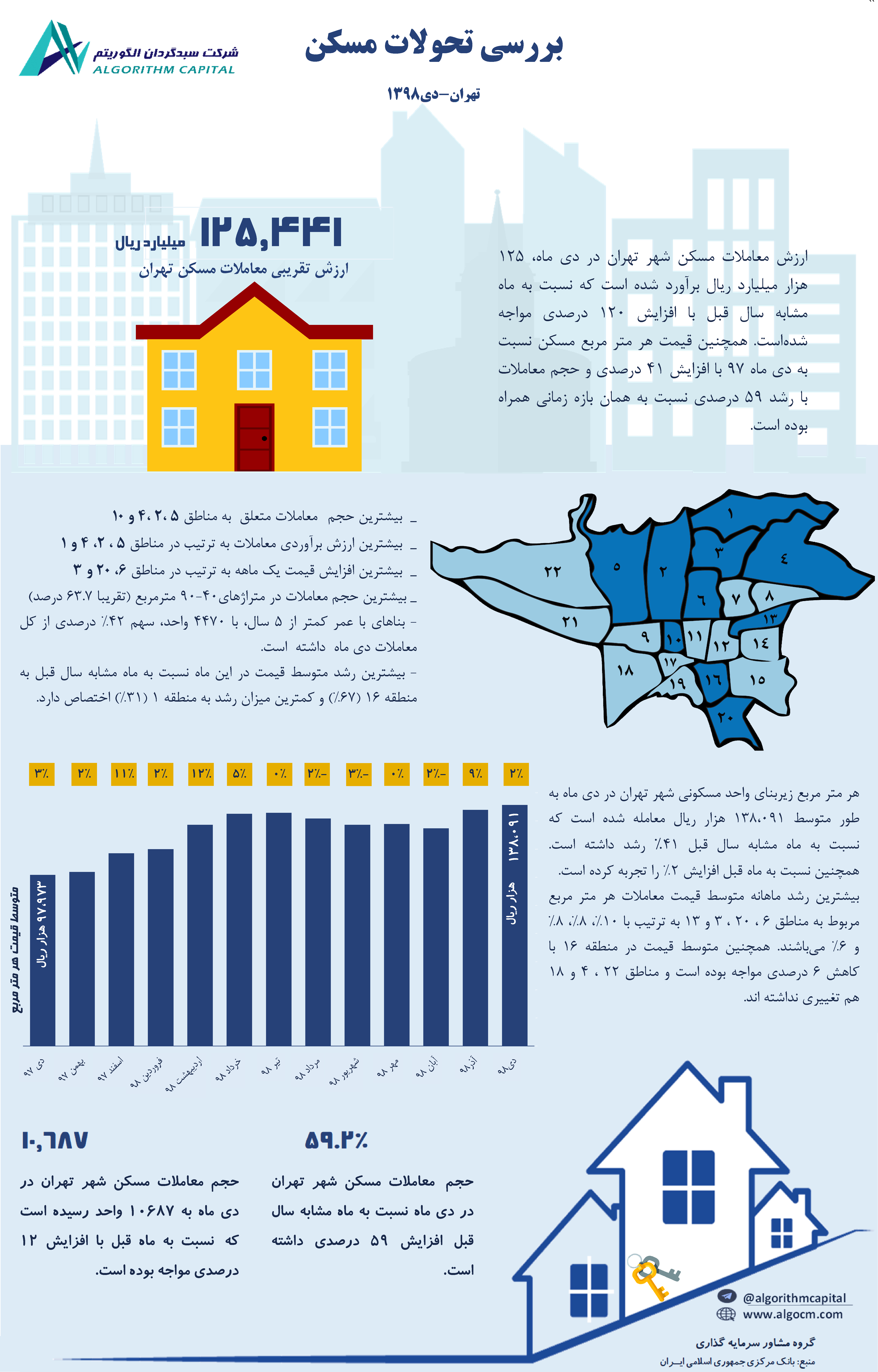 افزایش 12 درصدی حجم معاملات مسکن در شهر تهران در دی ماه 98 نسبت به ماه قبل