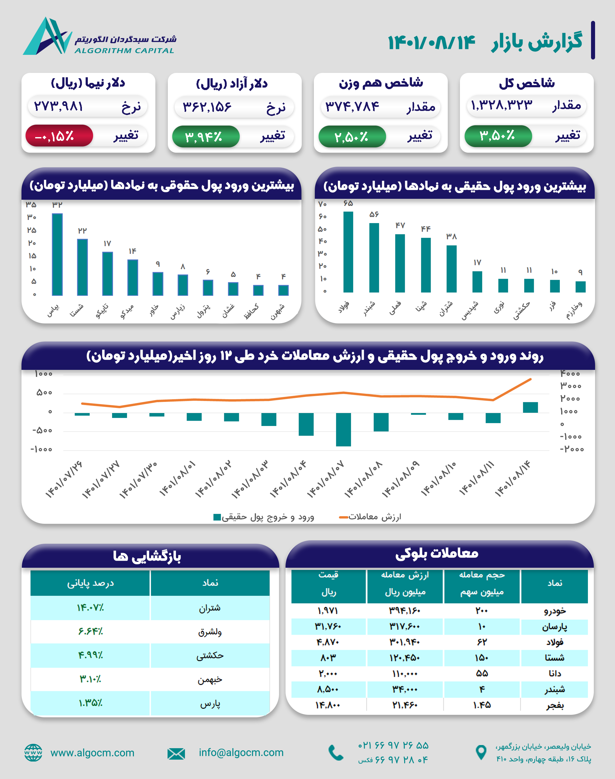 گزارش روزانه بازار ۱۴ آبان ماه ۱۴۰۱