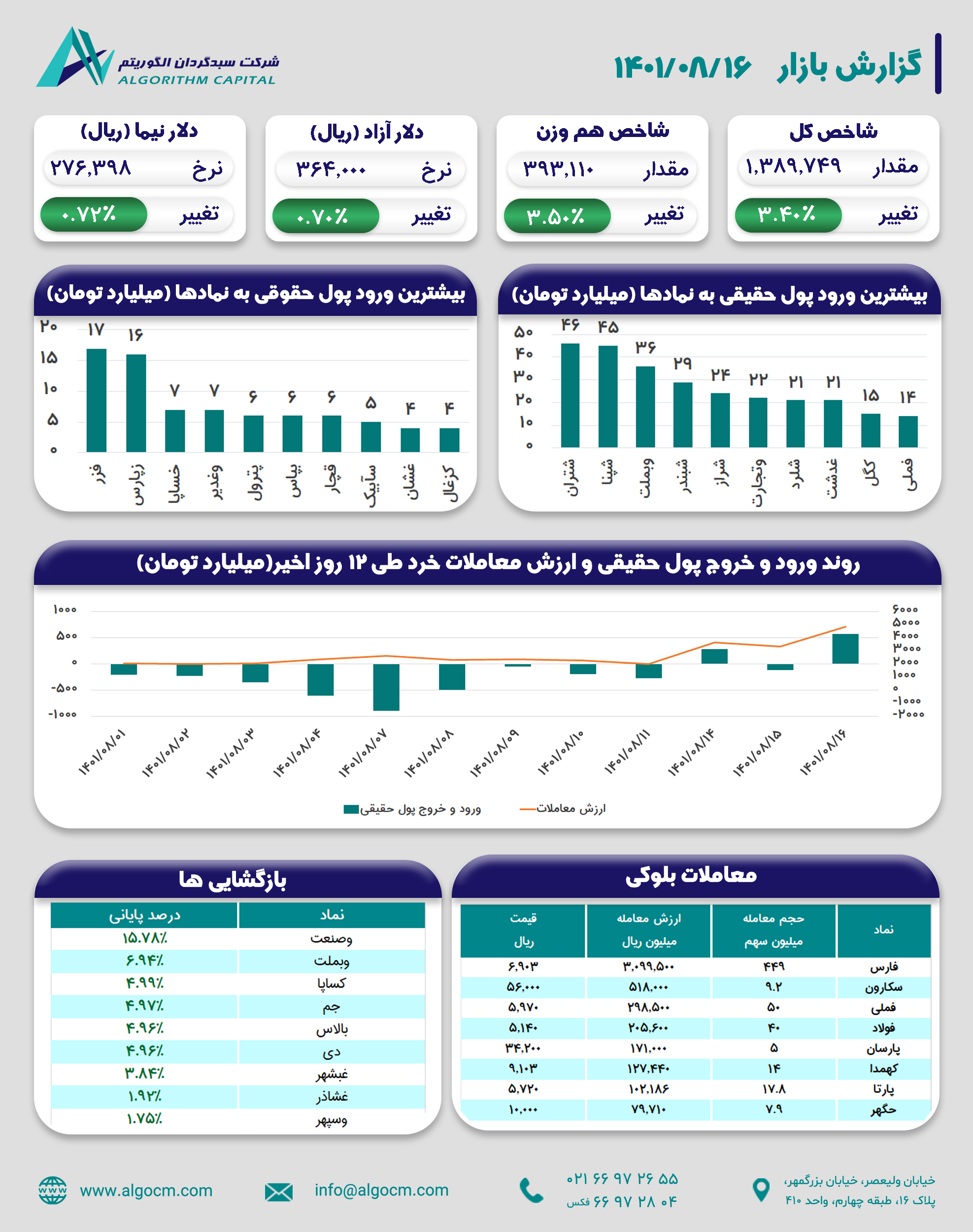 گزارش روزانه بازار ۱۶ آبان ماه ۱۴۰۱