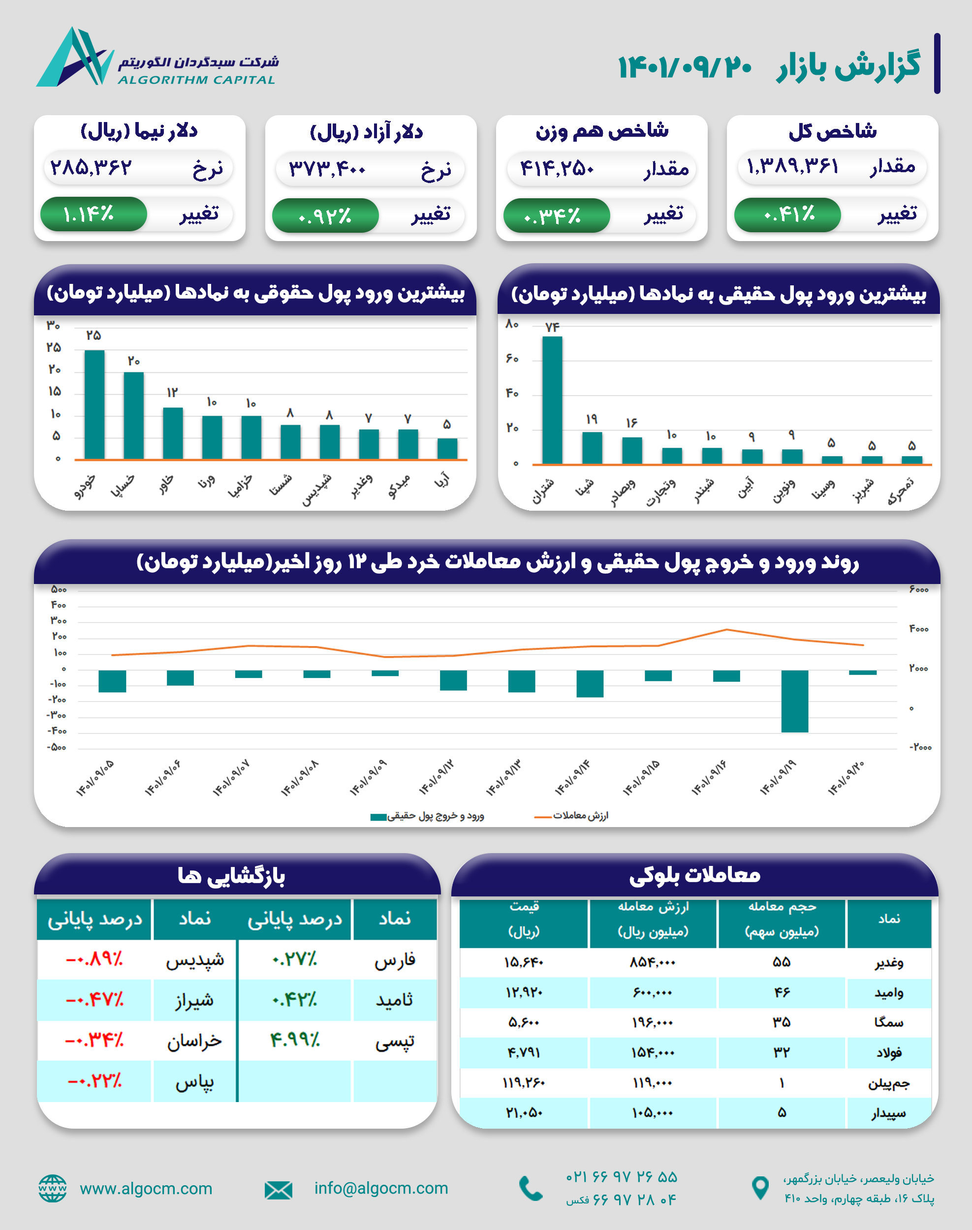 گزارش روزانه بازار ۲۰ آذر ماه ۱۴۰۱