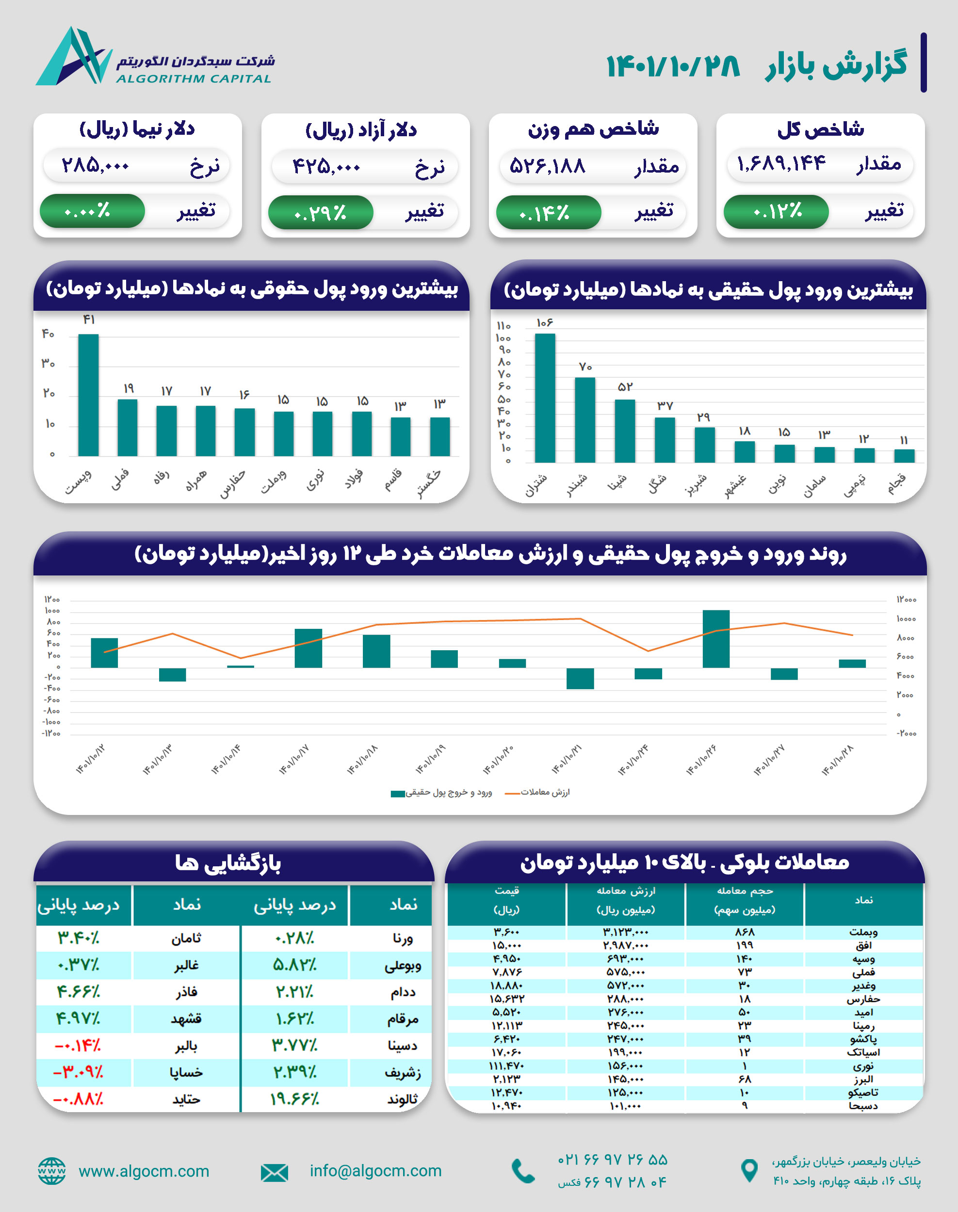 گزارش روزانه بازار ۲۸ دی ماه ۱۴۰۱