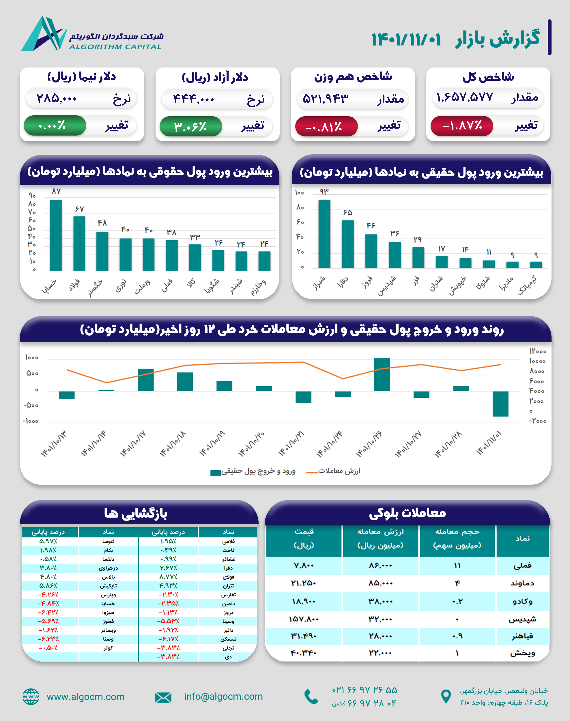 گزارش روزانه بازار ۱ بهمن ماه ۱۴۰۱