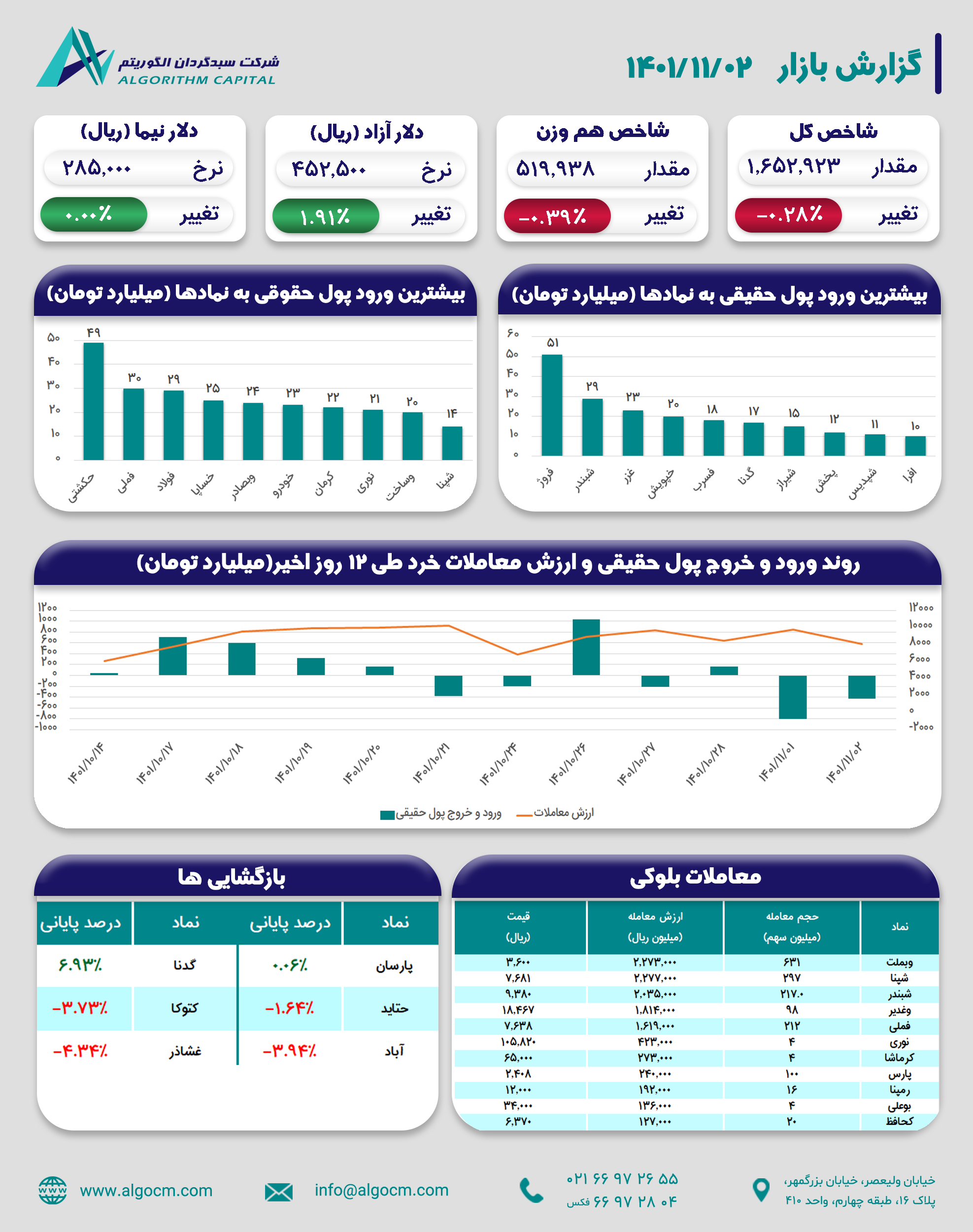 گزارش روزانه بازار ۲ بهمن ماه ۱۴۰۱