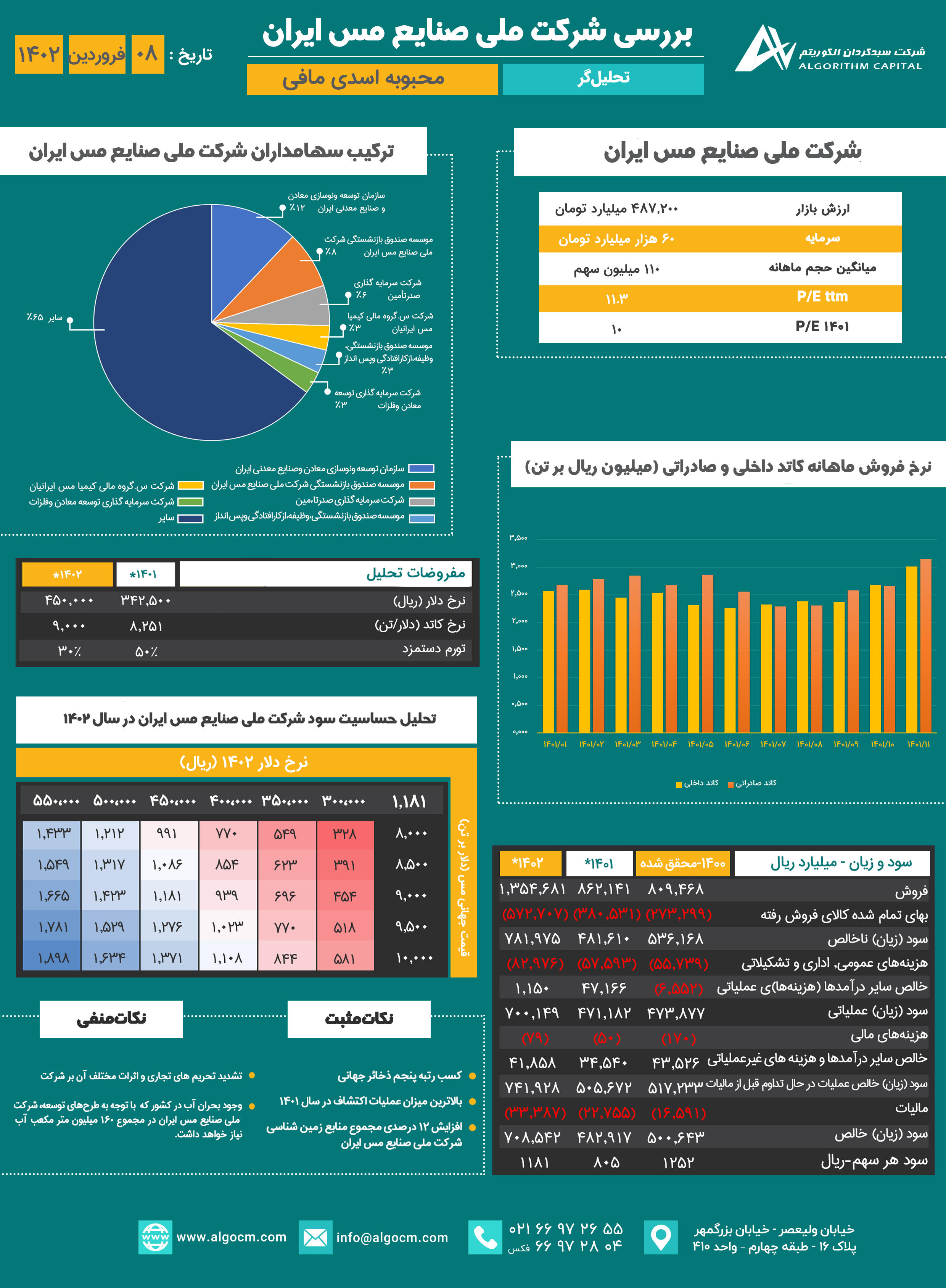 در سال ۱۳۵۱ دولت اقدام به تأسیس شرکت سهامی معادن مس سرچشمه کرمان نمود. در سال ۱۳۵۵ در پی تصویب قانون تأسیس شرکت و تغییر پارهای از مفاد اساسنامه، نام شرکت به شرکت ملی صنایع مس ایران تغییر نموده است که بر طبق آن، کلیه فعالیتهای معادن مس کشور اعم از اکتشافات، استخراج، بهرهبرداری، تولید محصولات پرعیار مس، ذوب، پالایش و صنایع جانبی و نیز تولید محصولات فرعی مس و همچنین توزیع، فروش داخلی و صادرات مس از اهم وظایف قانونی شرکت ملی صنایع مس ایران به شمار میرود. شرکت ملی صنایع مس ایران بزرگترین تولیدکننده مس ایران و خاورمیانه است که واحدهای فعال آن شامل مجتمع مس سرچشمه، مجتمع مس شهربابک، مجتمع مس سونگون و معدن مس چهل کوره است.