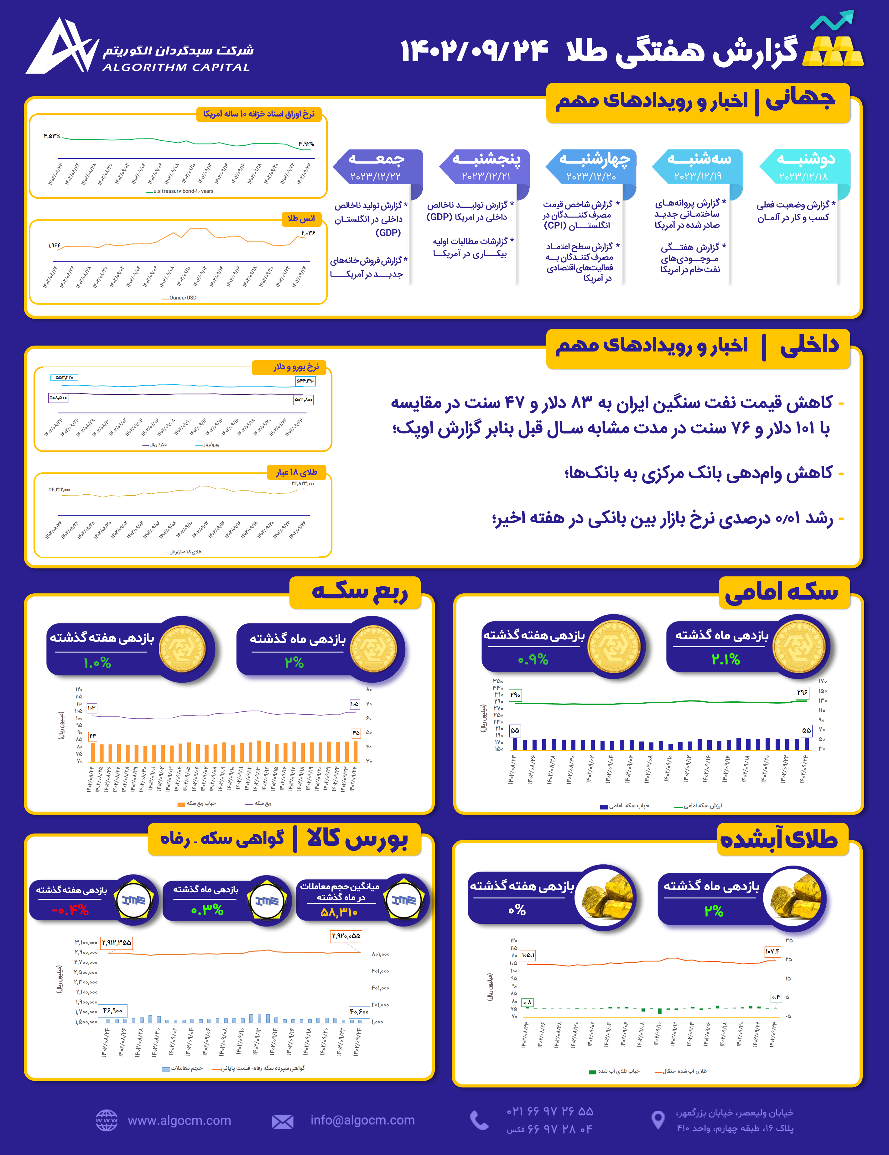 تغییرات نامحسوس قیمت طلا و سکه در هفته اخیر