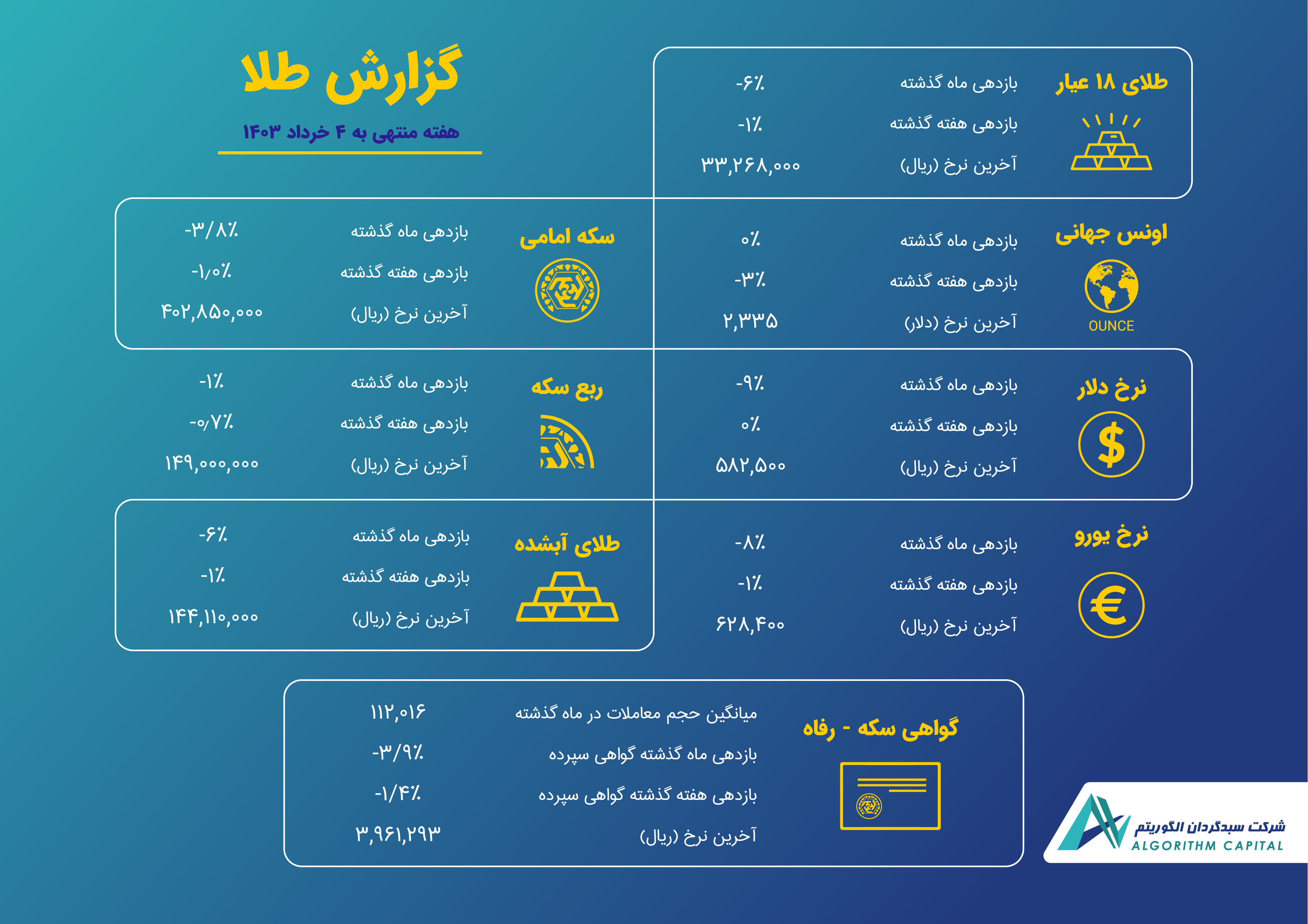 تغییرات نامحسوس قیمت سکه و طلا در هفته اخیر.