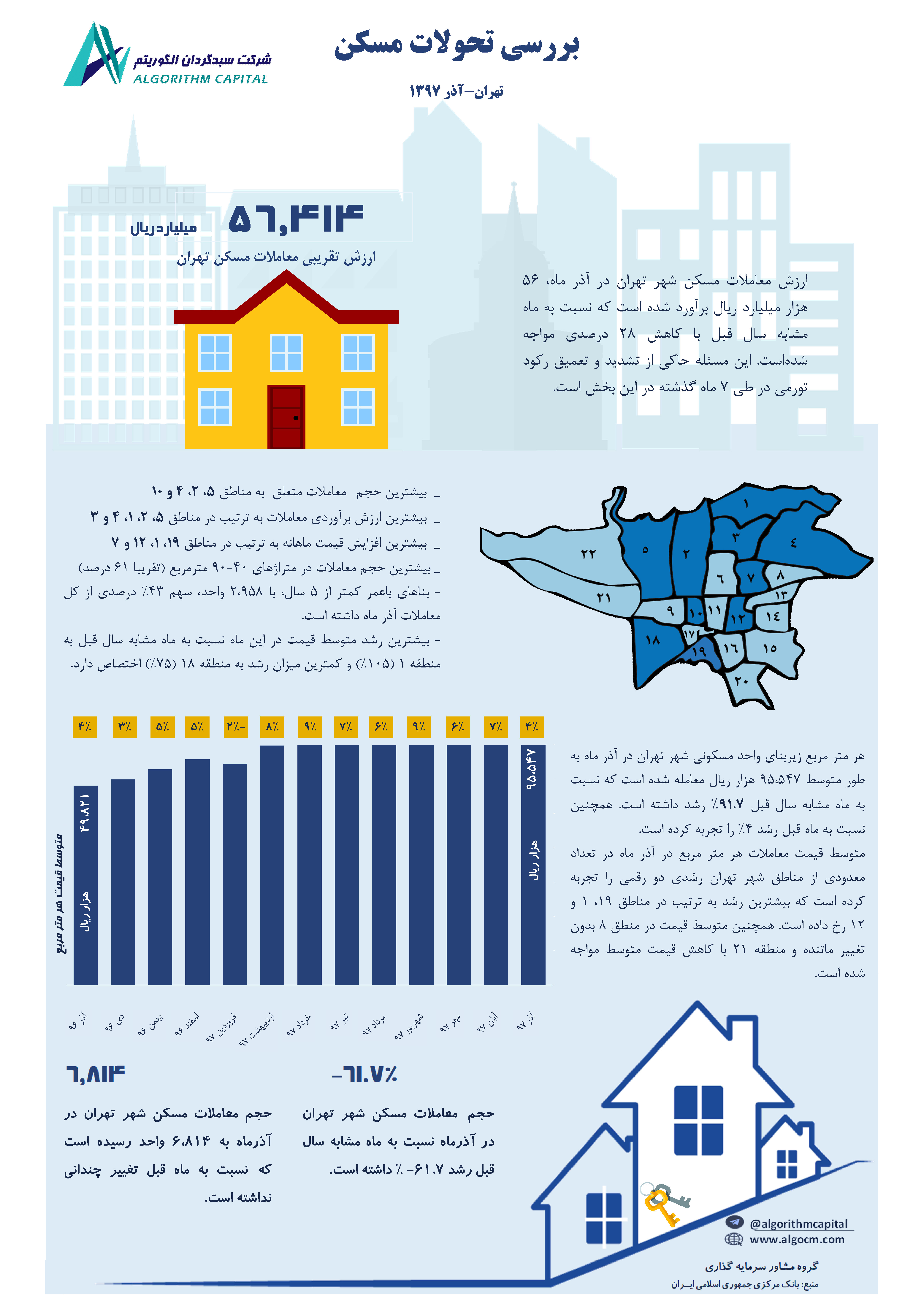 اینفوگرافیک بررسی ماهانه تحولات مسکن شهر تهران حاکی از تعمیق و تشدید رکودتورمی ۷ ماهه در این بخش است.